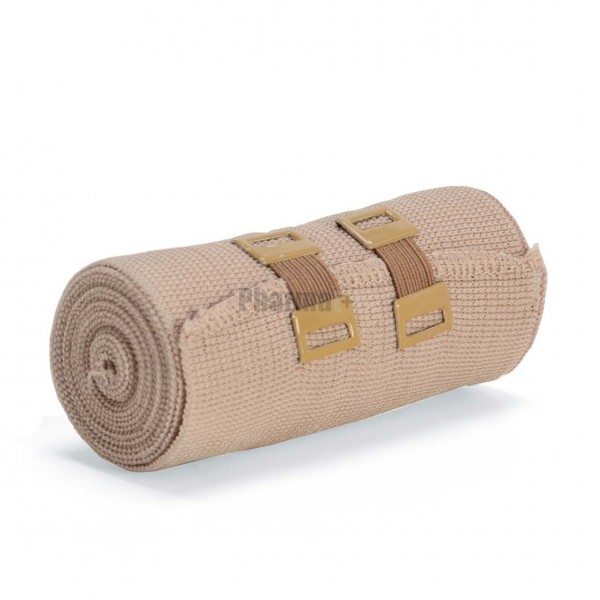 Elastic lightweight bandage for compression, washable repeatedly. It adapts to parts of the body conical or round; It does not prevent movement.