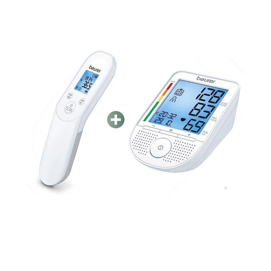 Beurer Talking Upper Arm Blood Pressure Monitor BM 49 + Non-Contact Clinical Thermometer FT 90
