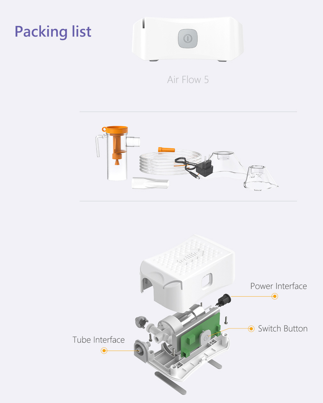 - Built-in lithium battery: It can be used for cyclic charging, no need for charging when nebulization
