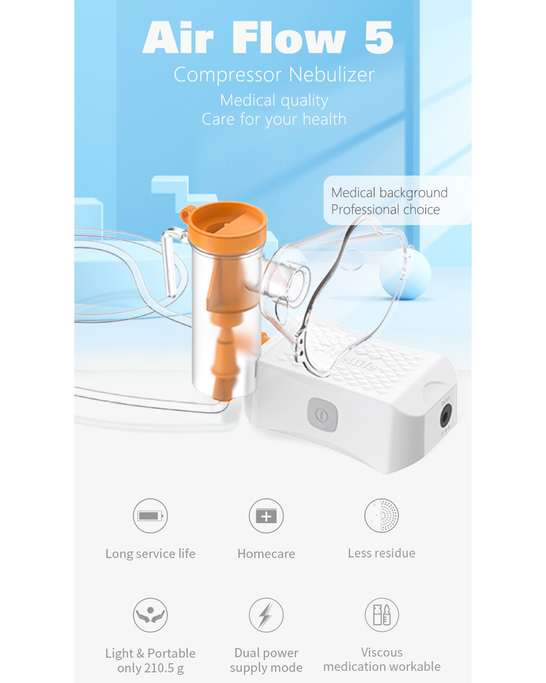 Experience targeted and efficient respiratory relief anytime, anywhere with the Feellife Air Flow 5 Compressor Nebulizer.