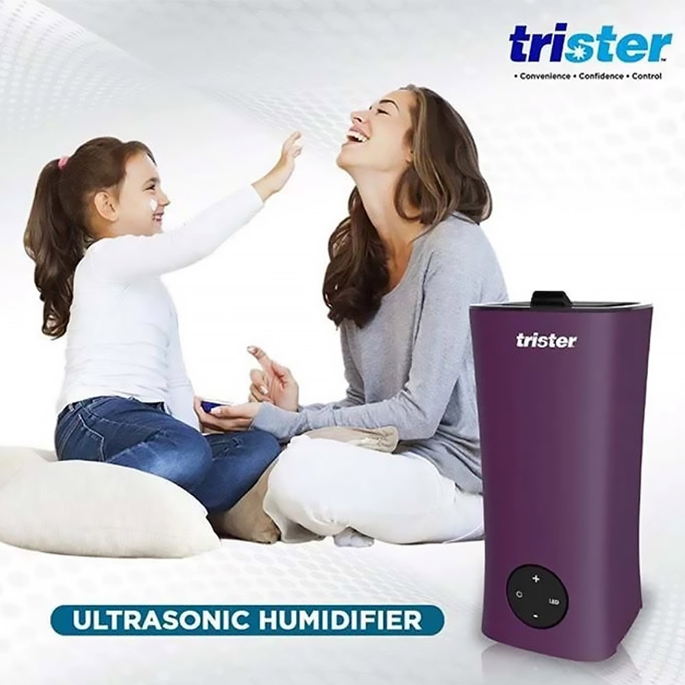 Trister Ultrasonic Humidifier 2L Purple: Dry indoor air can cause dryness of skin, throat, nose, eyes and lips. Air conditioners can reduce humidity significantly, making a room dry. Furthermore, high humidity can worsen respiratory problems and create dampness in the air. Controlling air quality is an important way of keeping the whole family healthy.