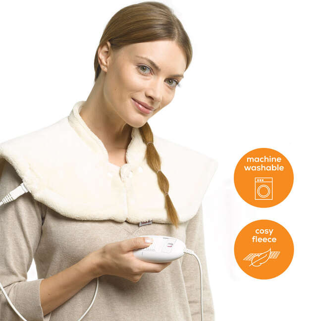 Keep your shoulders and neck cosy and warm. The extra-soft fleece fibre surface and the breathable material make it especially comfortable.