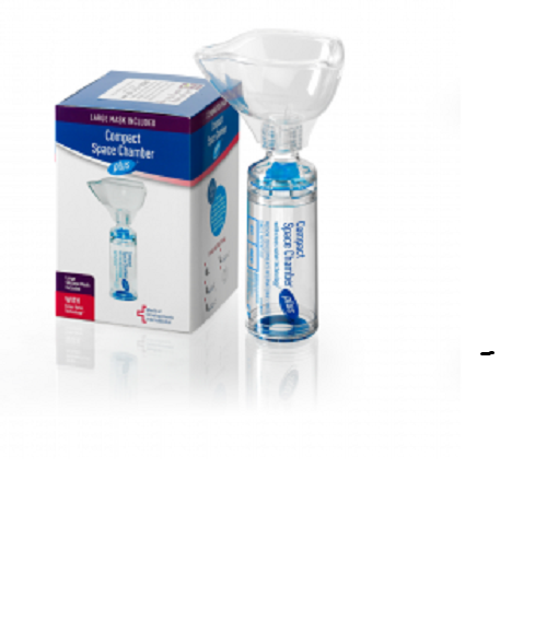 Compact Space Chamber Plus with Large Mask Compact Spacer Plus can be used by children and adults who use a Metered Dose Inhaler (MDI) or puffer.