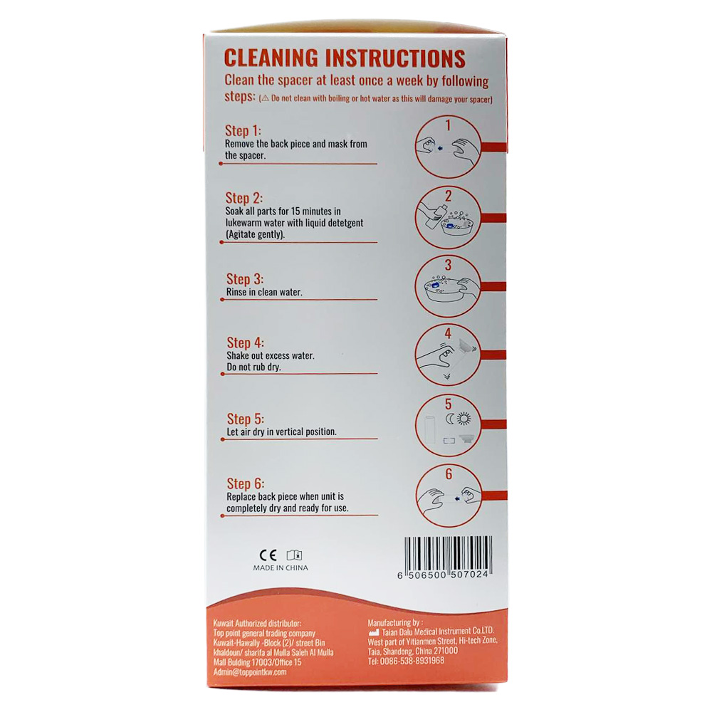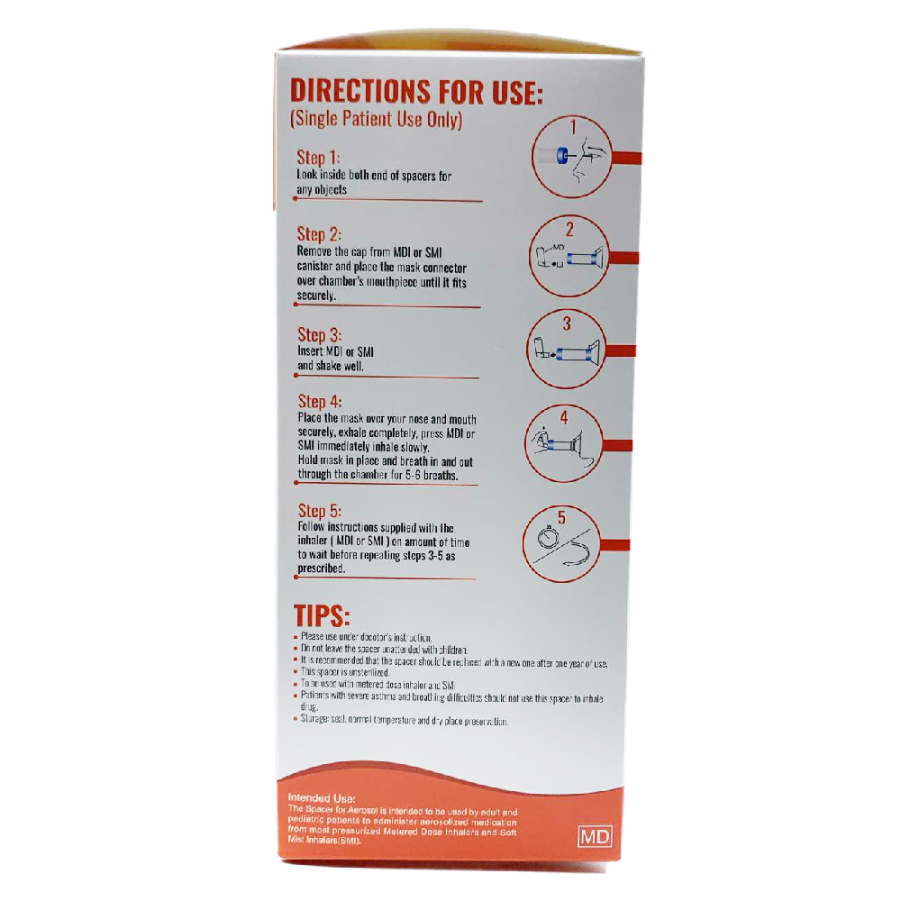 Please use under doctor’s instruction. Do not leave the spacer unattended with children. It is recommended that the spacer should be replaced with a new one after one year of use.
