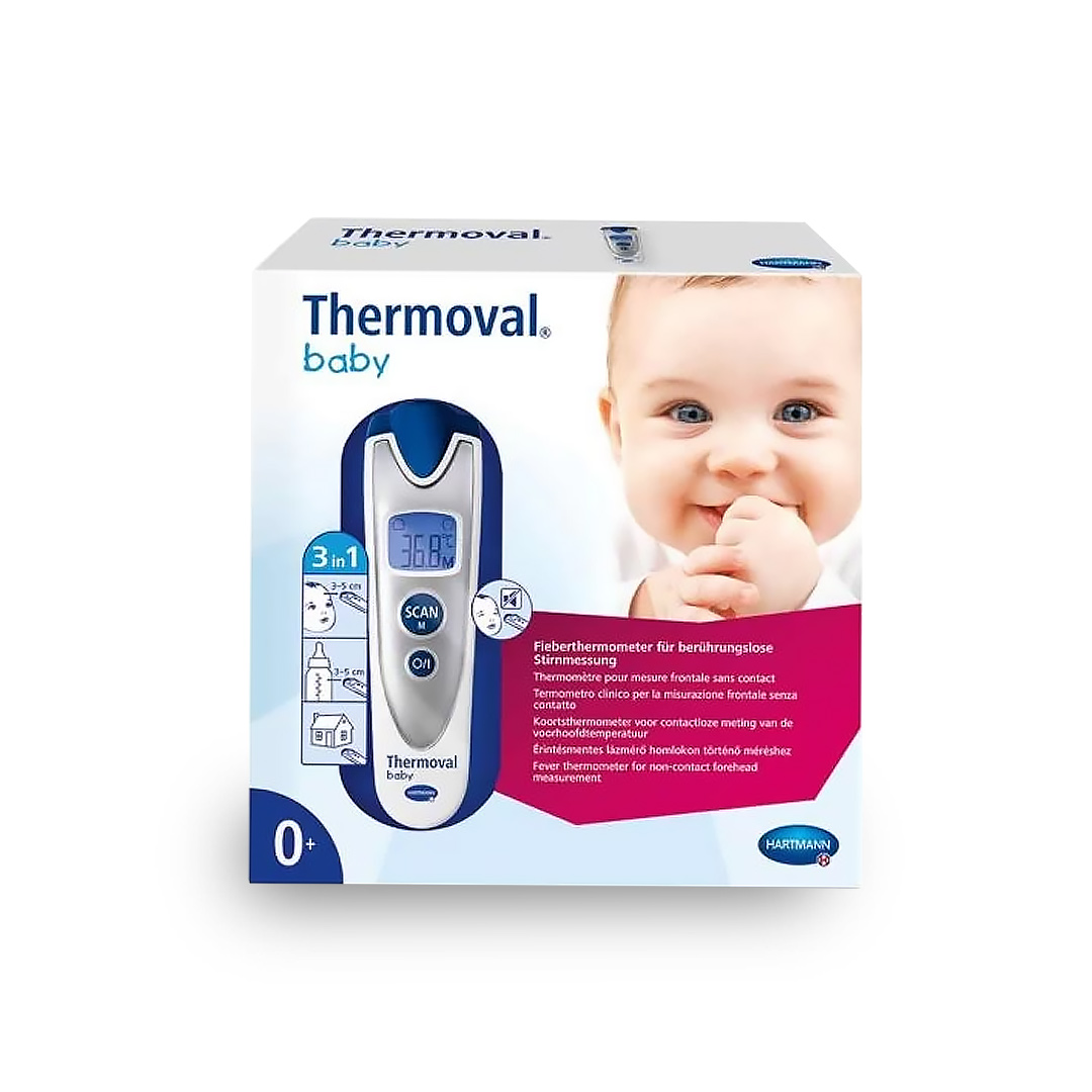 Thermoval Contactless Baby Thermometer. Contactless temperature measure for young children. Easily tell when your baby has a fever. When your little one is unwell, it’s important to take and monitor their temperature frequently in case of fever – but it isn’t always easy. With the Thermoval contactless baby thermometer, you can get an accurate reading within 3 seconds with no fuss at all!