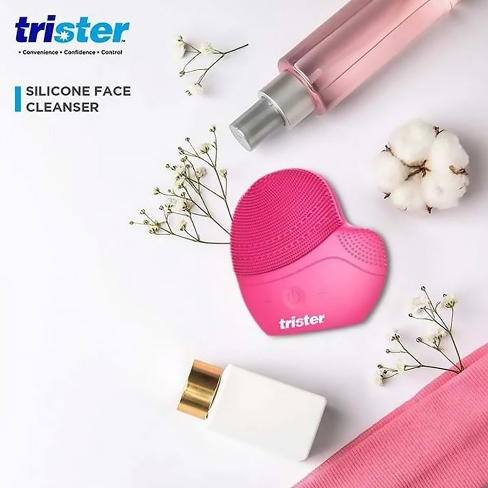 Trister Silicone Face Cleanser: The Trister Silicone Face Cleanser delivers a deeper, gentler clean than from any facecloth, combining vibration pulsations and soft silicone touchpoints that stimulate and invigorate all skin types.