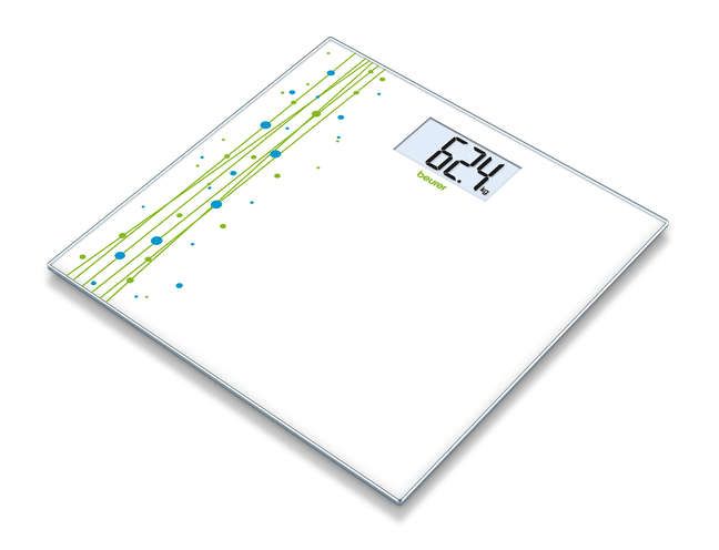 <strong>Beurer Digital Glass Scale Soda GS 201</strong> Your bathroom is anything but boring with the glass bathroom scale with printed motif with colour accent.