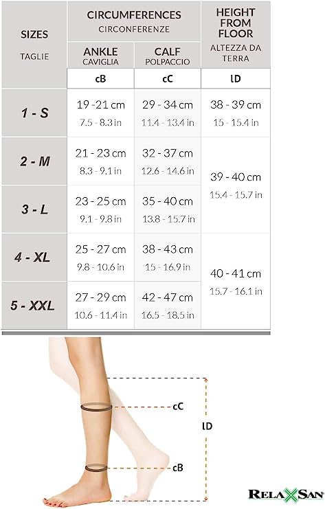 The proper administration of mmHg requires the right choice of the size to be worn, which is based on the ankle circumference and not the dress size.