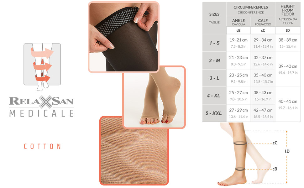 The heat-regulating and breathable effect make it possible to wear Relaxsan Medical Cotton even in summer when due to the increased seasonal temperature, the veins tend to expand more and therefore there is a greater need for elasto compression.