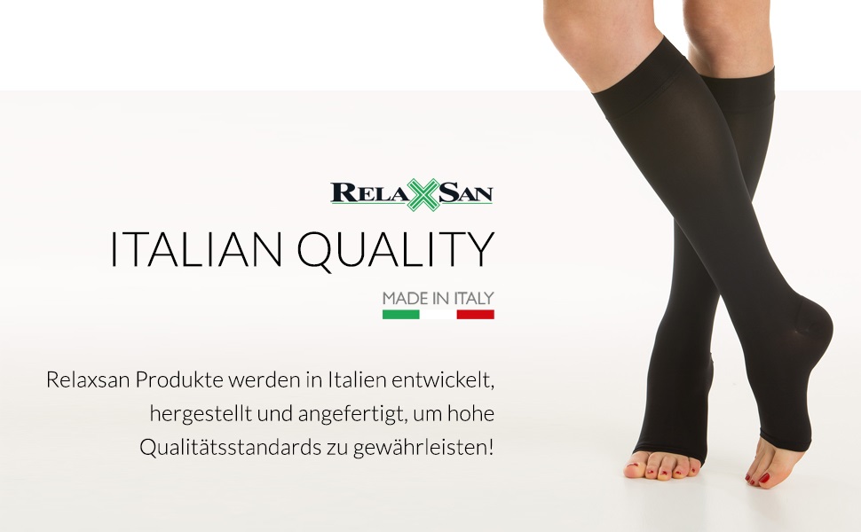 These elastic knee socks gambaletti elastici have a slight graduated compression of 23-32 mmHg around the ankle, which then slowly decreases upwards. Very good workmanship, flat and almost invisible seams and elastic band around the knees, very soft and comfortable. This model has a closed toe.