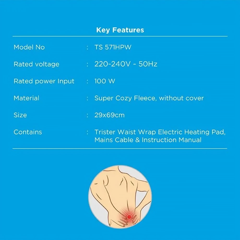 Trister Waist Wrap Electric Heating Pad: Pain is an important signal from the body that something is wrong. We need to listen to our bodies when these important signals are given. Continued and excessive pain is abnormal and as debilitating as any other disease. A person’s pain threshold is completely different from another person and no two people experience pain the same way.