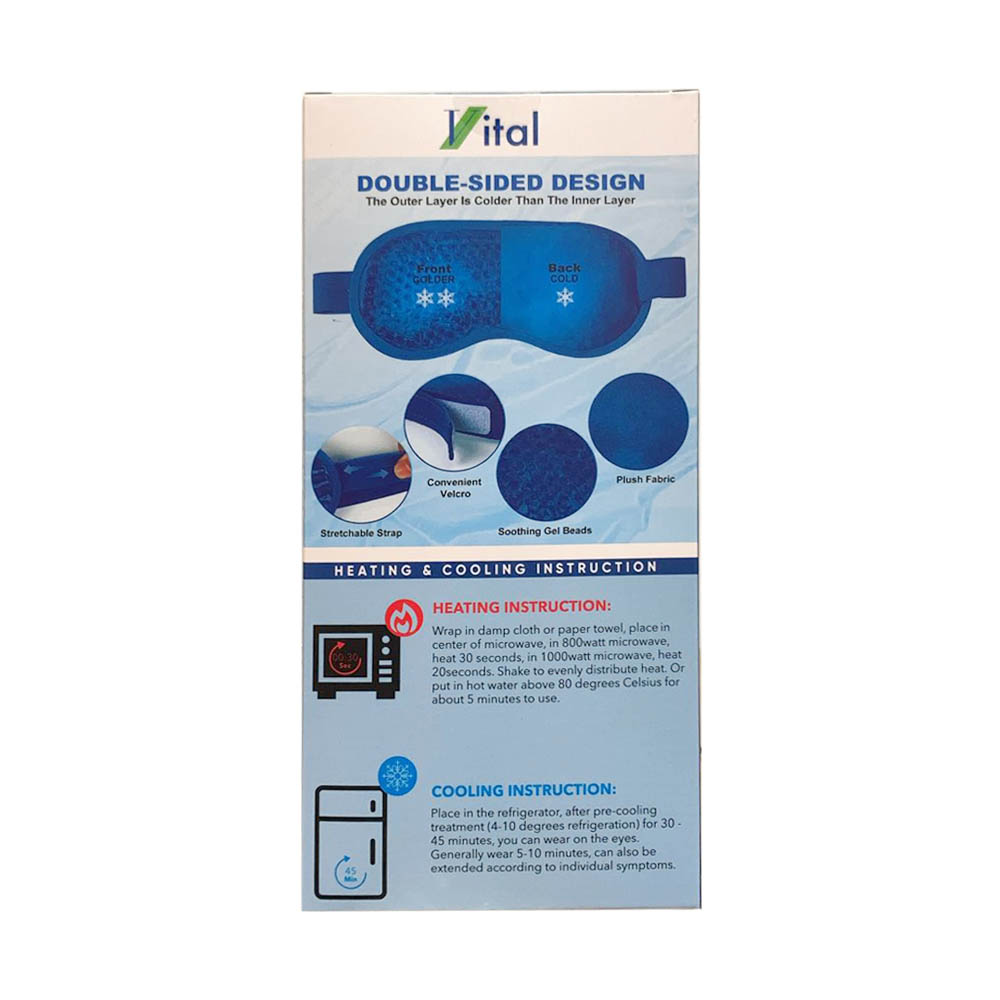 Vital double-sided eye mask: It contains non-freezing gel beads to give the mask the necessary flexibility when used. It is designed with two sides, one of which is covered with a soft cloth to avoid extreme cold or excessive heat that may cause redness or burning of the skin. It can be used cold or hot, ideal for puffy eyes and dry eyes. And red and irritated eyelids, dark circles around the eyes, headaches caused by sinuses, relieves stress, and helps with peaceful sleep. Comfortable and safe for the skin, it has an adjustable elastic and adhesive strap.