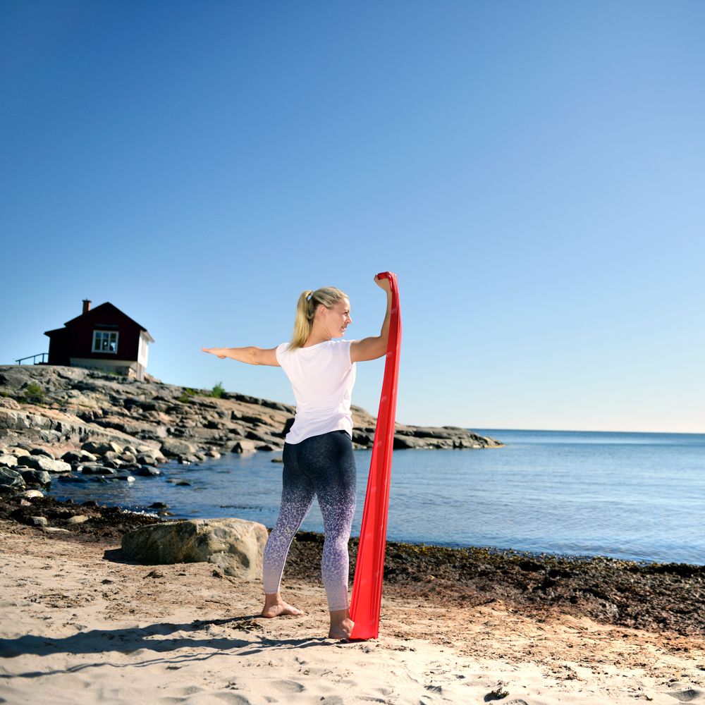 The Sissel® Fitband Essential is an allergen-reduced natural latex exercise band. It can be used to support therapy, for movement exercises, and to increase strength and stamina, it is suitable for people of all ages. This band is available in various strengths for progressive exercising, is extra wide for maximum comfort, and has reduced amounts of powder making it pleasant to the touch.