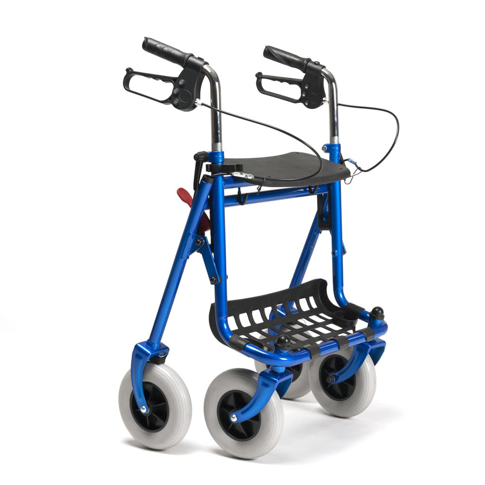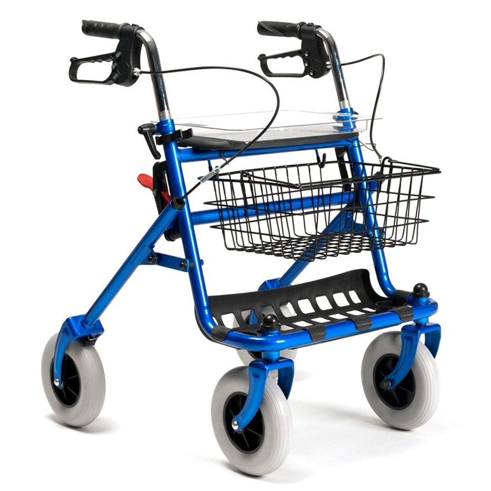 This product can also be folded in half with the same handle, making it more compact for transport. Made of steel and suitable for use inside and outside your home. A complete, very reliable Classic rollator with an excellent price/quality ratio.