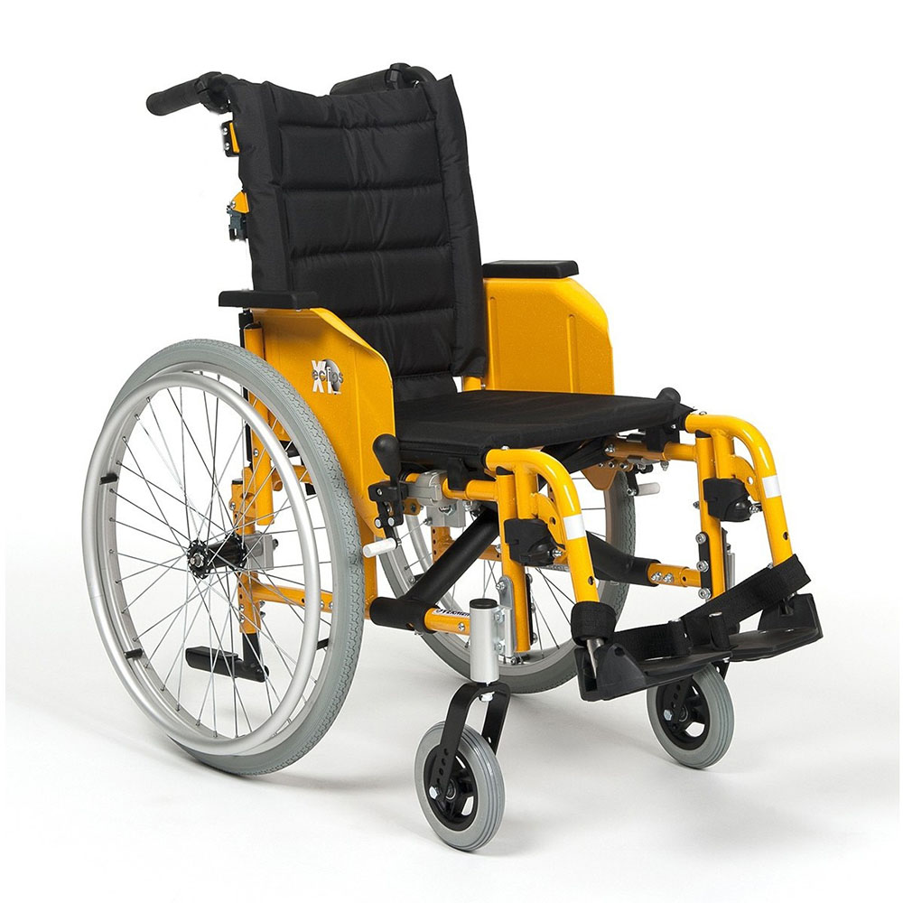 Constructed in aluminum, the Eclips X4 kids offers you an ultra-light wheelchair combined with sturdiness and ease of use. Equipped with clothing-protectors results in a very modern look. Without the wheels and the footrests, the Eclips X4 kids weighs no more than 9 kilograms making it very easy to transport.