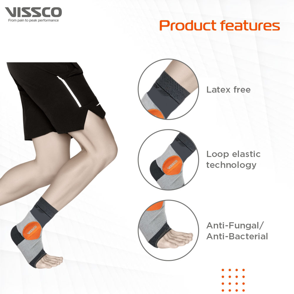Vissco Ankler Moderate Support Gray | 2 in 1 Anklet + Binder | Provides support & stability to the Ankle.