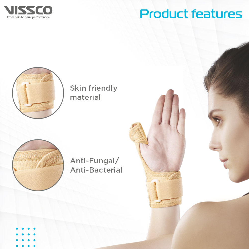 Vissco Thumb Spica Support for Both Left/Right – Locks the Thumb Free Hand Movement for Men & Women | Thumb Injuries, Pain Solution for Ligament laxity (Beige)