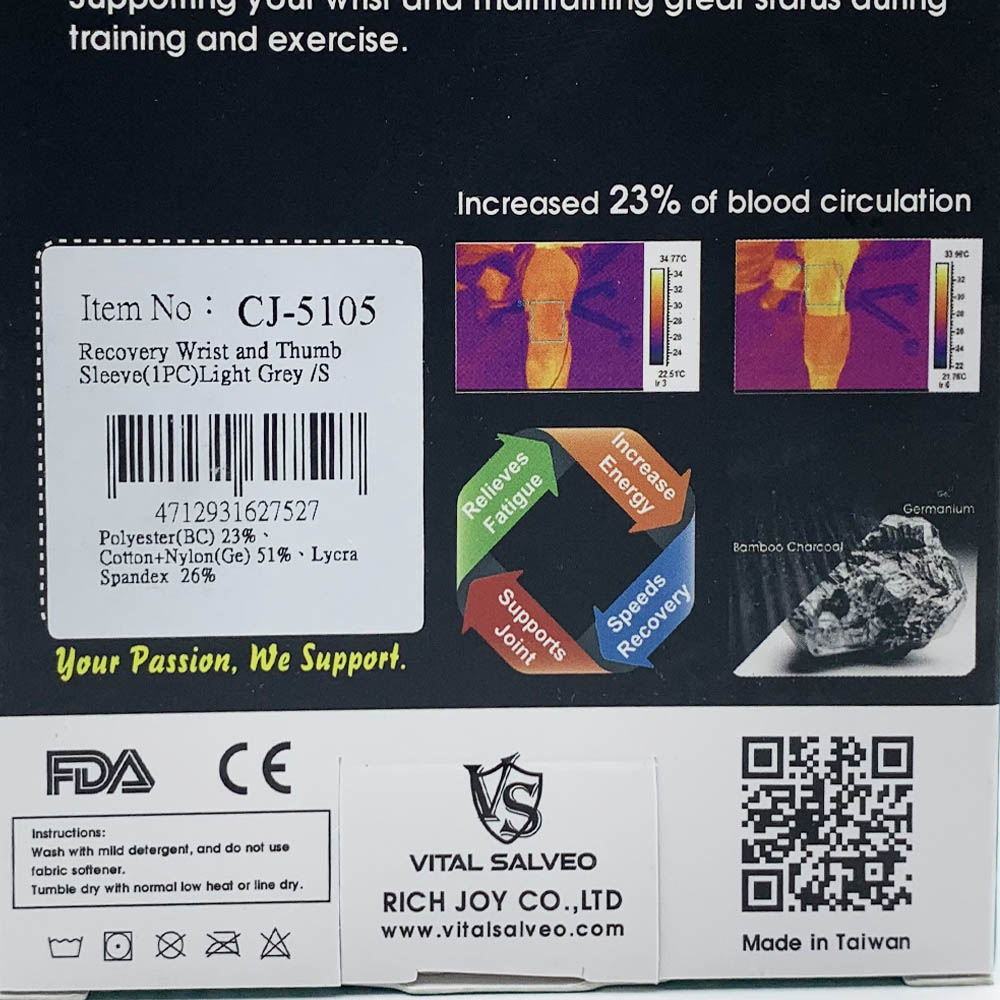 Vital Salveo Compression Recovery Wrist and Thumb Sleeve Item SKU: CJ-5105