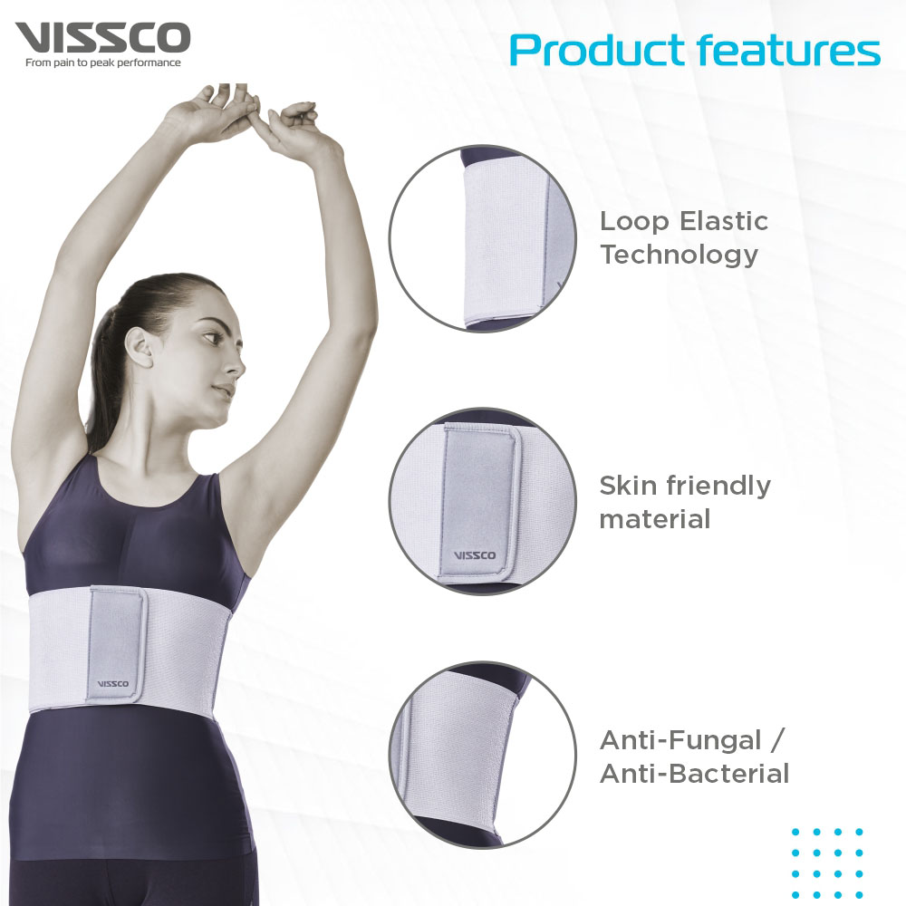 Vissco Injured Rib Belt Grey | Provides Moderate Support to the Injured Ribs & Allows Normal Respiration (Grey)