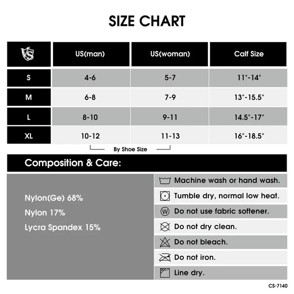 | Size Chart | Men Shoe Size | Women Shoe Size | Calf Size |